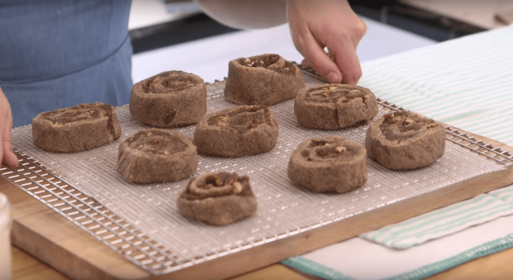 Slowly roll the dough into a tight spiral using wax paper. You will end up with a thick log.